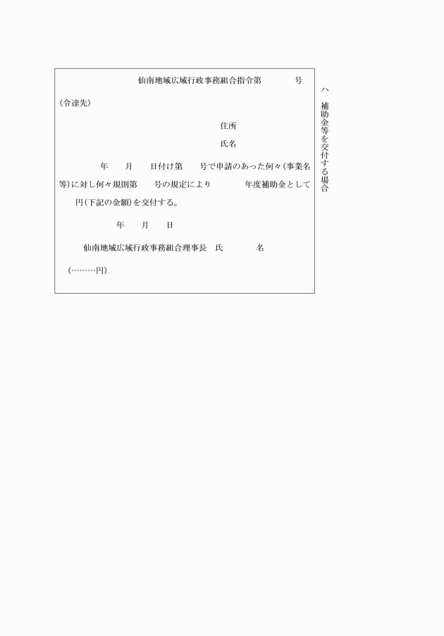 ハ 特定の所属所に対する場合は当該所属所の正式名称とし「仙南地域広域行政事務組合」は冠しない。